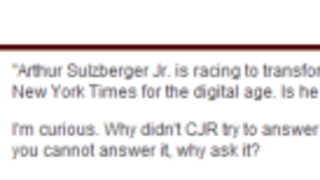 Above, Jay Rosen, former NYU journalism department chair and current faculty member, leaves a mean comment on some story at the Columbia Journalism Review. Hah. Very professional, Jay. Let the J-School War Commence! Our money's on Jay and his merry band of new-media rebels. Those CJR kids are too earnest and "concerned." Click to see the comment! [CJR, hat tip Hunter]