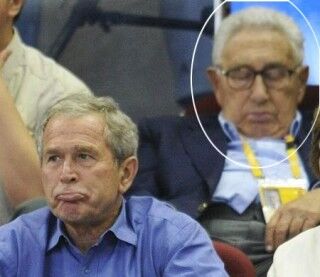 We thought it had been a while since Kissinger had left the country, because every time he tries to go to Europe someone threatens to put him in front of a tribunal, but there he is in China, happily napping. Of course Kissinger is a dear, dear friend of China, and has been ever since the Nixon administration. China is a fantastic example of Kissinger's particular brand of international relations at work-the markets are free, and in another couple decades maybe the invisible hand will stop all those human rights abuses. In the meantime, let's do some business!