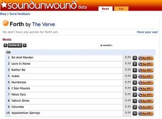 Amazon is releasing a site called SoundUnwound — a version of IMDB for musicians, editable by anyone like Wikipedia. Few know that IMDB, the movies database, is owned by Amazon.com. But the universal vendor seems to value the data therein — knowing which obscure movies a now-famous actor starred in helps cross-sell DVDs. Most of SoundUnwound's information comes from YouTube, Wikipedia, and MusicBrainz — another open-content music database. You can find out who the sound engineer for Amy Winehouse's studio debut was, if you're so inclined — okay, it's Jimmy Hogarth. With free data, Amazon gets what it pays for, in the form of broken track listings and unknown playtimes on songs, but it's still good enough to help upsell you more MP3s from its struggling music store.