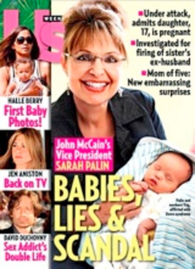 Maybe it should have been obvious that the celebrity weeklies were going to politicize as soon as Hillary Clinton and her supporters showed strong resistance, during the primary season, to acquiescing to Barack Obama, thus highlighting the importance of women voters in 2008. But the heightened political importance of the magazines, whose readers are overwhelmingly female, wasn't in anyone's face until this week, when Us Weekly made waves with its controversial "Babies, Lies & Scandal" Sarah Palin cover. The issue, unflattering to Palin, has so far resulted in 5,000-10,000 cancelled subscriptions, MSNBC.com's gossip column is reporting. (Though MSNBC's Courtney Hazlett is close to Us Weekly's rivals; and-see below-the magazine's Janice Min says the losses are overstated.)