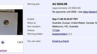Bidding for an Australian's copy of Google's comic-book press release on its new Chrome browser closed after 17 bids at AU $454.99, or approximately $363. If all proceeds weren't being donated to charity, we'd have a truly disturbing waste of money on our hands here, especially considering the Chrome presser isn't even the best "Google" comic available on the auction site.