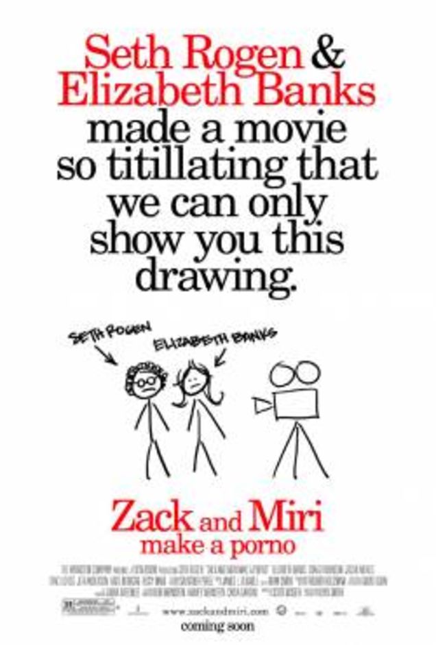 The original movie poster for the new Kevin Smith flick, Zack and Miri Make a Porno, was banned by the MPAA earlier this month because it conjured the terrifying image of Seth Rogen receiving a b.j., which is not safe for kids or anyone else. Now the new version of the poster (pictured) is out: the old "so hot you have to see it for yourself" trick. They still face the problem of having "titillating" and "Seth Rogen" in the same sentence, though. There's no way out. Click through to relive the magic of the banned original, if you like: