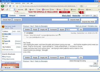 , gained access to another Palin email account: gov.palin@yahoo.com. It looks legit! The offending posts, screenshots, heretofore unseen family photos, and emails have all been deleted from Imageshack and 4Chan. But we have them. You want to read Sarah Palin's email? Ok, sad thing first: a good Samaritan reset the password and tried to alert Sarah. But he also posted the new password, causing multiple people to try to log in at once, freezing the account for 24 hours. And now, the account has been deleted! Which is, as we said, maybe destruction of evidence? So for now this is, we think, all we'll get to see from this email account (if anyone finds evidence of saved emails, let us know.) The full timeline of events, with corroborating evidence of the legitimacy of these screengrabs, is here.
