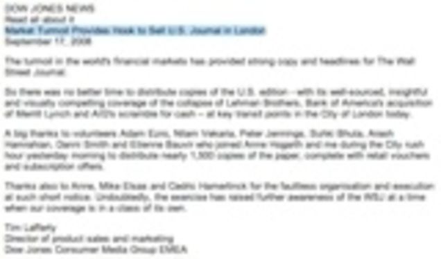 It's actually true, as the memo states, that there is "no better time" than the current Wall Street panic to hand-distribute copies of the Journal throughout London, thus advancing editor Robert Thomson's internationalist ambitions. But perhaps this observation could have been kept close to the vest.
