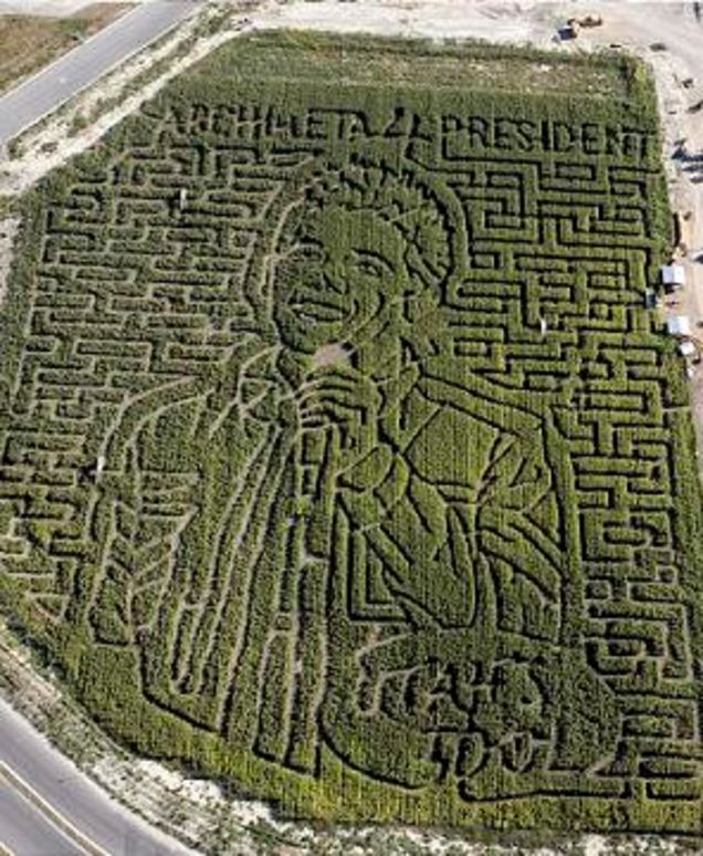 Thou Shalt Not Worship False Idols: And now, from the Deseret News, comes this story of a Utah man who cut 12 acres of his cornfield into a maze in the shape of American Idol runner-up David Archuleta. "We really thought of Obama and McCain at first, but everyone we talked to was sick of the candidates," creator Brett Herbst said. "Then we said, 'Let's do Archuleta.'" Words fail us, so we'll defer to Deseret News commenter "asiangirl": "WOW!!!! THE EXTENT OF LOVE FOR THE MOST LOVED!! I LOVE IT!!!!..." A refugee from the Clayboard, perhaps? [Deseret News]