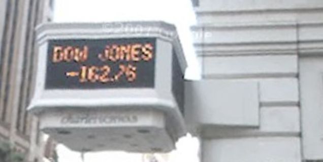 Venerable San Francisco financial firm Charles Schwab just took an $85 million hit, writing off some debt it owned in Lehman Brothers and Washington Mutual. On the Old Money quarter-mile, Montgomery Street, a small electronic ticker from Schwab offers a barometer. After yesterday's 777.68 plunge, the year-to-date number from the Dow Jones index has gone from -17.1 percent when I walked by on Friday to -20.5 percent yesterday afternoon. I've updated the photo from Google Street View to correctly reflect current trends. [San Jose Mercury News]