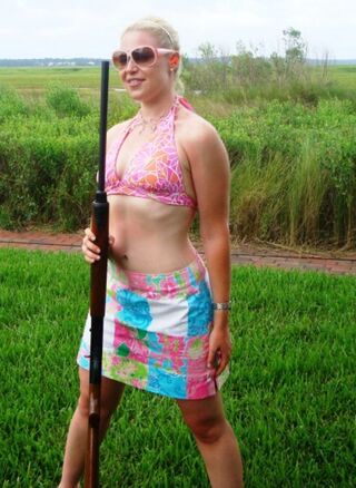 Good morning! We're bringing back our Gawker Pin-Up feature. Today's candidate: socialite and publishing heiress, blogger Emily Brill. She's channeling Sarah Palin and holding a gun. Brill is usually eager to highlight her uptown upbringing—as she told Page Six magazine, "I didn't come from a chicken farm—I cam from Dalton." (Have any suggestions about our next pin-up? Who would you like to see shirtless and holding a gun?)