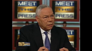 Former Secretary of State under George W. Bush, Colin Powell, endorsed Barack Obama for President on Meet the Press this morning. Powell, a Republican and longtime friend of John McCain, said, "I think he is a transformational figure, he is a new generation coming onto the world stage, onto the American stage, and for that reason I'll be voting for Sen. Barack Obama... He's thinking that all villages have values, all towns have values, not just small towns have values." As for McCain and his supporters' straw-grasping, "terrorist" and "Muslim" talk, "I have been disappointed frankly in some of the approaches Senator McCain has taken recently... The party has moved even further to the right and Governor Palin has indicated a further rightward shift. I would have difficulty with two more conservative appointments to the Supreme Court, but that's what we'd be looking at in a McCain administration." Click through to watch the full endorsement. Click to view