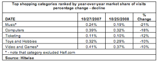 Online shopping is now mainstream enough to be a solid barometer of consumer sentiment. So this news from Hitwise, the website-measurement research house, is disturbing: Traffic to e-commerce sites has been dropping for eight straight weeks.