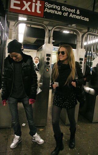 [Samantha Ronson, a deejay, with her girlfriend Lindsay Lohan, an actress, at the Spring Street C/E subway stop today; image via Splash]