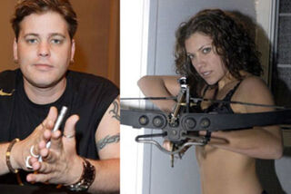 We were unfamiliar with Shepis's work, but learned from her bio that she is a "voluptuous New York-born beauty [and ] princess of scream [who] often upstages more seasoned actresses and has some great dance grooves." She has no fewer than 12 projects currently in the pipeline, including Blood De Madam: The Fallen Ones, Thorns from a Rose, and Night of the Demon. Quite obviously, that crossbow was aimed straight for Corey's heart. L'chaim!