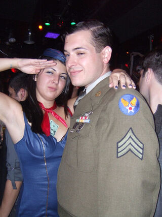 Got plans for Halloween? Some of the best parties have already happened, Flickr's photo streams tell me. This military pair had a gay old time in the Castro at Booty Call. Don't try heading to San Francisco's queerest part of town tonight, though; the City is still obstinately trying to ban Halloween from the neighborhood. Can you think of a better caption? Leave it in the comments. The best one will become the post's new headline. Yesterday's winner: WagCurious, for "Pirates of Silicon Valley." (Photo by Kevin Goebel)
