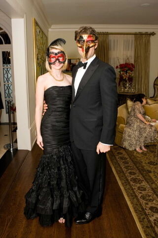 Zack Bogue, the well-dressed boy toy of Googler Marissa Mayer, always looks good in black. But the surprise in SFluxe's coverage of a recent masked ball is that Mayer does, too. Smart of her to adopt a more subdued palette in these dark economic times. Can you think of a better caption for the photo? Leave it in the comments. The best one will become the post's new headline. Friday's winner: Ted Dziuba, for "A final salute to the good times." (Photo by Drew Altizer via SFluxe)