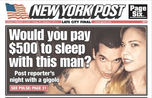 • Did you catch the New York Post's "prosti-dude" story today? Some staffers at the paper were a little less than thrilled with the PR stunt, it seems. [Gawker]