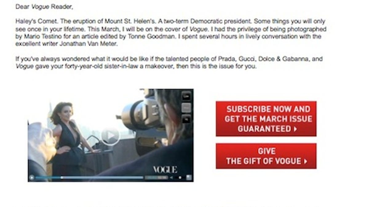 • Vogue's on a roll! Not only was Tina Fey's scar airbrushed off the cover of the March issue, the mag screwed up the letter sent out to promote it, too.