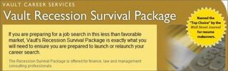 Donate to the food bank, and then in a few weeks, become a client of the food bank! And this one was for charity, but there are plenty of people who figure they can wring cash out of the unemployed. Vault.com offers a "Recession Survival Package": two 45-minute sessions with a career counselor for the low low price of $999! That's a value right up there with paying someone an equal amount to give you lucky Lotto numbers. Why not just spend the money on a handgun, and rob people? You know who should be really well-positioned to make a killing now? Mediabistro! They have all the media jobs, right? They own the market! This is when that $23 million price tag to buy them pays off. The flaw in all of these business plans: you're marketing to people with no jobs. Therefore they have no money. Also? All you people are selling "career services" because you don't have any actual careers to sell. Worst. Business plan. Ever. Except for Wall Street's.