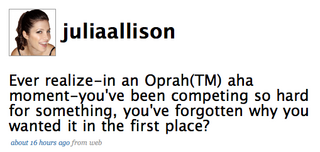 You know those movies where the big city hotshot character comes back to their town for the holidays and learns humbling lessons about life and love? Well that apparently played out in real life when Julia Allison—internet fame connoisseur, lifecaster—traveled back to Chicago for Thanksgiving. Between lazily pushing mashed potatoes around her plate and clubbing at "the hottest spot in Chicago," she seems to have experienced an existential crisis that led to a big, HUGE decision that she's of course loudly announced on her website: Julia Allison is going to Business School! And not just any business school. Like some sort of businessy Elle Woods, she's aiming for the crème de la crème: Harvard! And Stanford. What, like it's hard? There are, though, some small flaws in her plan: