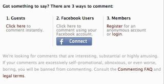 Update: For the curious, if you comment via Facebook Connect, this is how your comments will appear on Facebook: