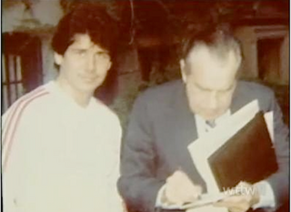 In 1980, a vacationing Rod Blagojevich camped in front of Richard Nixon's home, with a friend, until the pariah ex-president emerged and this picture was taken. What the hell is wrong with this guy?
