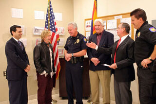 At 9:30 A.M., Mr. Spade stopped by the Phoenix Police Department's Desert Horizon Precinct and gave a check to Chief Harris made out to the Phoenix Police Foundation, a 501C3 status charitable organization led by long time foundation board president Marc Cavness, a local prominent attorney. The foundation will direct the full amount towards the purchase of the rifles.