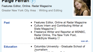 A newsflash from the New York Post: Unemployed 26-year-old writer Paige Ferrari, once a featured editor at now-defunct magazine Radar, has found part-time work!
