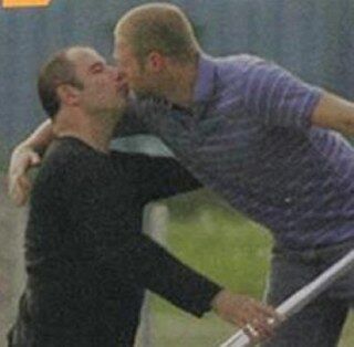 And the 2006 National Enquirer story which ran both an innocent-seeming photo of Travolta and Kathrein talking, and the two locking lips: