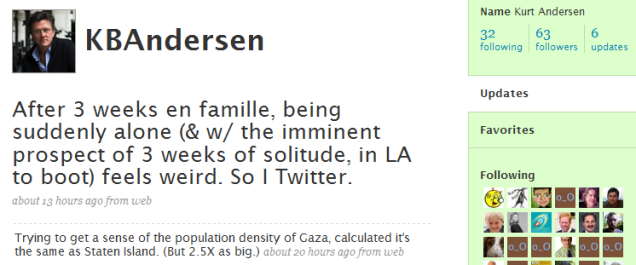 Kurt Andersen, who invented "snark" in 1986, is now "microblogging" at Twitter, the official web service of imagined pithiness.