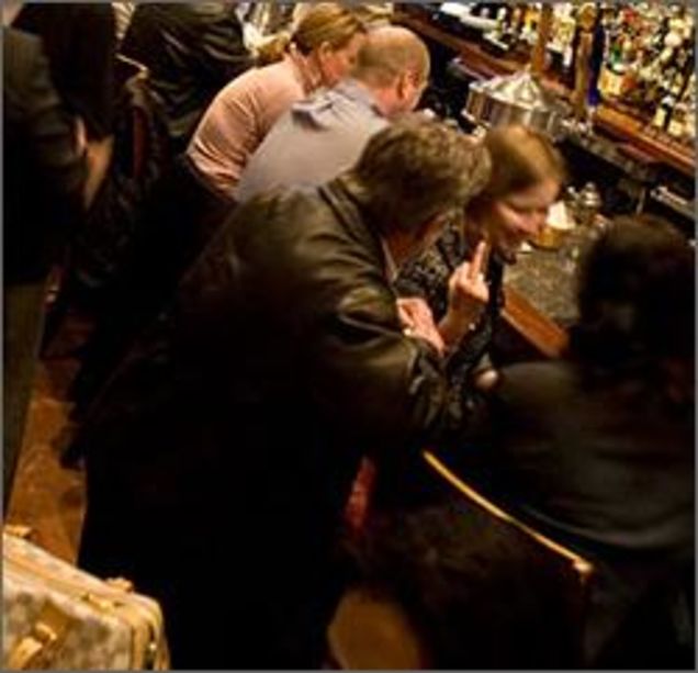 New York Times Dining section, today: a story about Obama and restaurants. The photo that ran in the print edition was innocuous. But the photo that ran online is totally flicking you off: