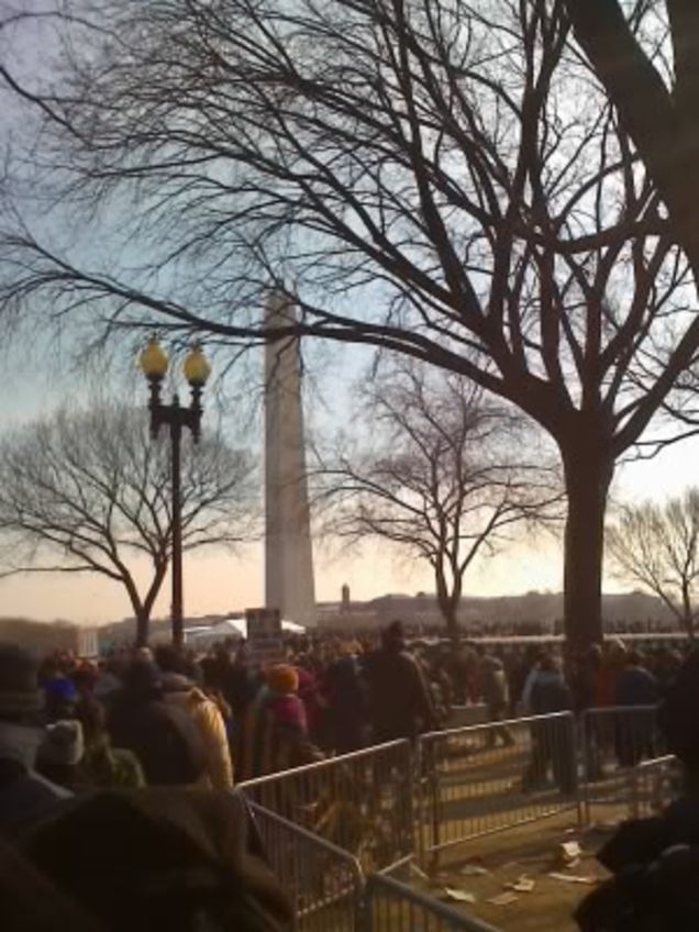 Our own Hamilton Nolan has been braving the chaos and lack of cell phone coverage in DC to get a glimpse of Barack Obama's big day. He just got through: