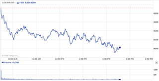 Famed business non-expert Rachel Maddow says every time Obama opens his mouth, the stock market goes up. That didn't happen today. The Dow is down more than 210 points and just above 8,000.