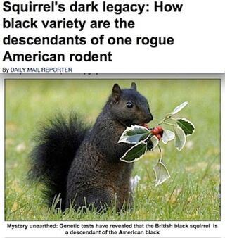 In the most egregious case of animal profiling since the Africanized "killer" bee caused mass hysteria in the U.S., a professor at Anglia Ruskin University in Cambridge, England determined that the black squirrels are wiping out their beloved native squirrel. The natives have red hair like proper Europeans, while the blacks came from America during the late 1880s. In addition to the reds, the black squirrels are also wiping out the more common "greys," also considered terrible impure foreign interlopers.