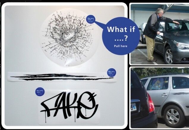 Motorists find ads annoying when they are placed on billboards, hundreds of feet away. "Better" idea: why not make them think that your ad is actually vandalism to their car? Yea!