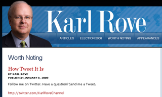 So David Axelrod, Obama's campaign narrative guru and current "senior advisor" had a little interview with the Washington Post and said he was "disappointed" by Cheney and "surprised" by Card. But Rove, Rove got the best response of all!
