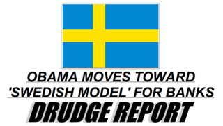 It's a terrifying prospect, this "Swedish model," or at least Mr. Drudge certainly hopes it sounds scary, to claim our great empire will become a lowly Scandinavian constitutional monarchy, ranked number one on The Economist's Democracy Index. Well, either he's hoping to scare us with the prospect of boring Nordic democratic socialism or he's just using the term "Swedish model" to further the old Republican talking point that all the bailout money is going to porn.