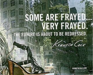 Professional designer and amateur writer of excruciating ad copy Kenneth Cole knows times are tough as leather. Maybe it's not fashion-able, but he's optimistic America will design a solution to sew up all these problems!