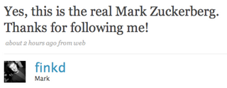 Facebook almost bought Twitter for $500 million last year. The deal didn't happen — but the service found a fan in 24-year-old Facebook CEO Mark Zuckerberg. This morning, he revealed himself as "finkd" on Twitter.