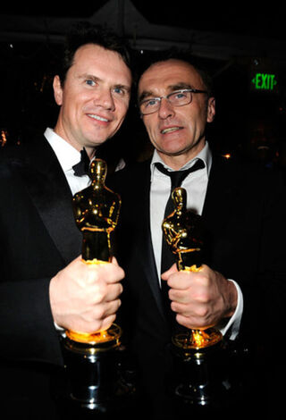 Replacing him is the Brit ex-pat Rice (on the left with Danny Boyle), and currently the head of specialty film label Fox Searchlight. For a studio exec, Rice is well-liked and affable enough. Also, Searchlight has been one of the only companies to consistently profitably play the Oscar game, backing this year's Slumdog Millionaire and last year's Juno.
