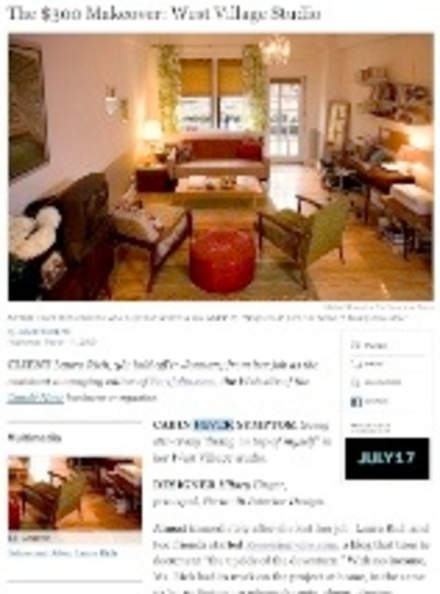 Rich was laid off as assistant managing editor of Portfolio.com in January; by March she was, the New York Times reports, going stir-crazy "living on top of myself" in a 12-by-17-foot West Village studio, where she practices yoga, runs the recession blog she started and, we're guessing, plans few outside excursions to restaurants and bars and so forth, since that costs money.
