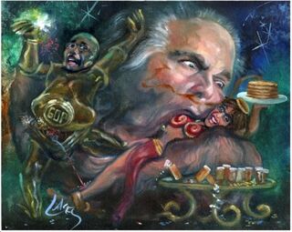 As you recall: "Rush Limbaugh with a chained Princess Leia (Sarah Palin) and Michael Steele as C3P0." Winning idea by commenter saythatscool, congratulations! Your prize is a feeling of artistic and cultural satisfaction.