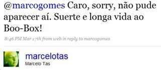 Marcelo is pioneering the world of paid endorsements—on Twitter! Everything is different now. Here's how it works: people watch Marcelo on TV; they think he's funny and interesting; they follow him on Twitter; then, when he bizarrely busts out and recommends a specific new fiber optic internet service there, in Brazil, they'll all buy it, because hey, it's Marcelo!