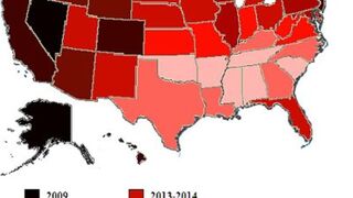 Hirsute blogger Andrew Sullivan spotted the map on the Scroll Blog, which created it using data from election predictor Nate Silver of Fivethirtyeight.com. According to Silver's data, support for gay marriage bans, passed in 30 states, is declining at the rate of 2 percentage points a year — a sure sign of a generational shift in attitudes.