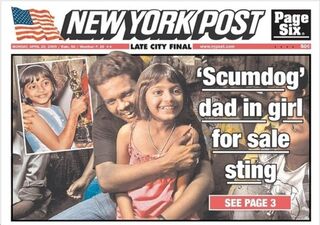Jesus, that is truly horrible. Add in the tidal wave of poverty porn the movie started, and Slumdog is actually a net loss for the human race! Unless you're a News Corp. shareholder: Rubina Ali has now served Fox Searchlight in the film, and also Murdoch-owned News of the World for the original child sale story, and Murdoch's Times UK and New York Post for follow-ups. Good work!