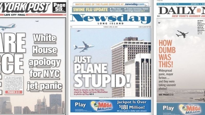 New York's tabloids are in high dudgeon over yesterday's Air Force One flyby. Who got the best headline and front-page out of it?