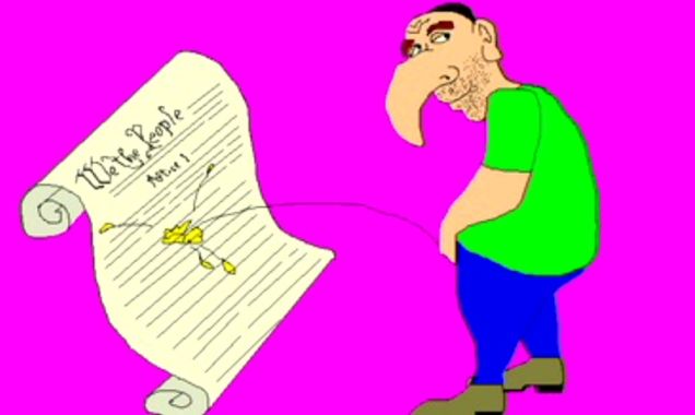 Thanks for your cartoon submission to MRFF, depicting a person, possibly intended to represent a person of Jewish faith (Mr. Weinstein?) urinating on the Constitution. At least, that is what you appear to be trying to convey - difficult to say with that level of draftsmanship.