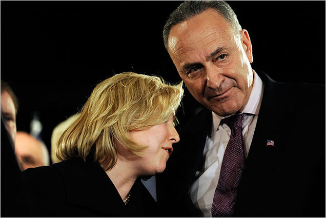 So Gillibrand, the Conservative gun-lovin' new New York Senator, has spent all of her time in the Senate flattering the hell out of Schumer. And he is an easily-flattered man.
