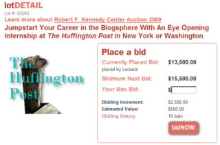 Would you like to pay $13,000 for the privilege of doing free work for a website for a couple months? Too bad, kid, because the next minimum bid on the HuffPo internship is $15,500.