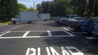 Update: Mystery solved! We're calling this one: yesterday's photo was real and Apple quickly made the fix. A neutral and very trusted source just went by the parking lot to investigate. His assessment: "Yeah, this was obviously scraped clean very recently and repainted. Can you see the outline of the old lettering? Sorry about the crappy iPhone photo. Nice coverup, Apple." He sends photographic evidence: