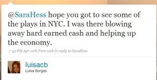 Luisa Borges lives in Rio and has a Twitter account with the handle "luisacb." And "Luisacb" is currently the "lucky" high bidder on the Huffpo internship "opportunity."