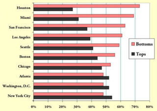 Yes of the ten cities surveyed, only three, in fact, had a higher ratio of tops to bottoms, and even then the numbers were almost even. But Miami, Houston, Los Angeles, and (surprise surprise) San Francisco, all seem rife with untended bottoms all reaching out across the cyber tundra, hoping to find some fleeting relief.