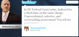 Mobbed-up former Top Cop Bernie Kerik pleaded not guilty yesterday to his new DC charges, which are similar to his old New York charges. And then he Tweeted about it, because he does not have very good legal counsel.
